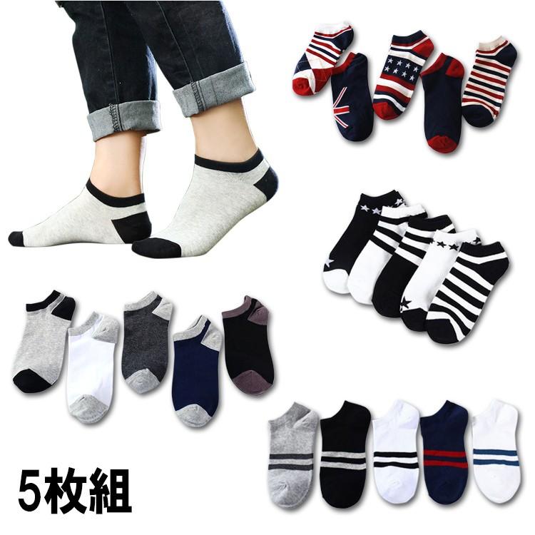 Amazon Co Jp 5足セット 靴下 メンズ おしゃれ 男女兼用 春夏 くるぶしソックス 24 27cm 服 ファッション小物