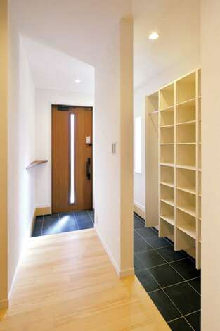 玄関は モデルハウスで人気のシューズクロークを設けた イエタテ