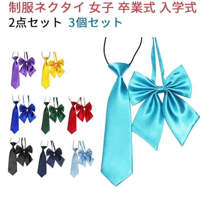 楽天市場 制服リボン 制服 リボン りぼん 制服りぼん スクールリボン 制服ネクタイ 2点セット 女子 高校生 簡単 学生服 卒業式 入学式 発表会 学園祭 コスプレ チェック レディース ハロウィン コスプレ プレゼント ギフト 3個セット Mdkstore楽天市場店